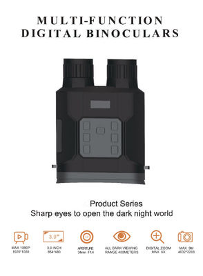 A resolução de vídeo dos nossos binóculos digitais de visão noturna é de 1080p com um ecrã LCD de 3 polegadas.facilitando a localização de animais ou outros objetos no escuro. A resolução de 1920*1080 garante a melhor visão possível, mesmo em condições de escuridão total.